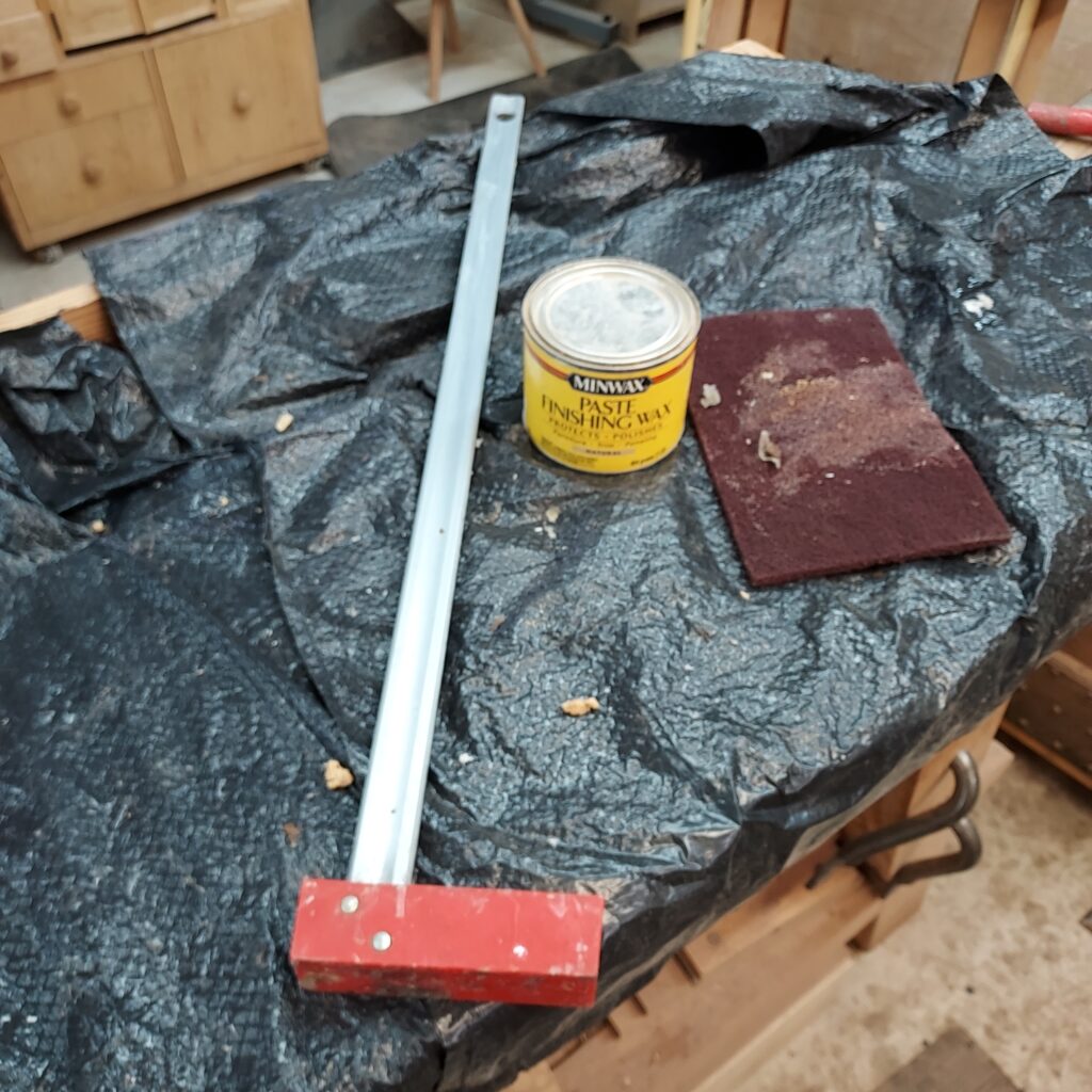One thing I can do, which you have to do every so often, is clean the glue off my clamps. As you can expect, during glue ups, sometimes there is glue squeezing out, and it can fall on the clamps. No matter how much I clean up, some of it ends up drying on the clamps, and over time, that can make the clamps difficult/impossible to work.