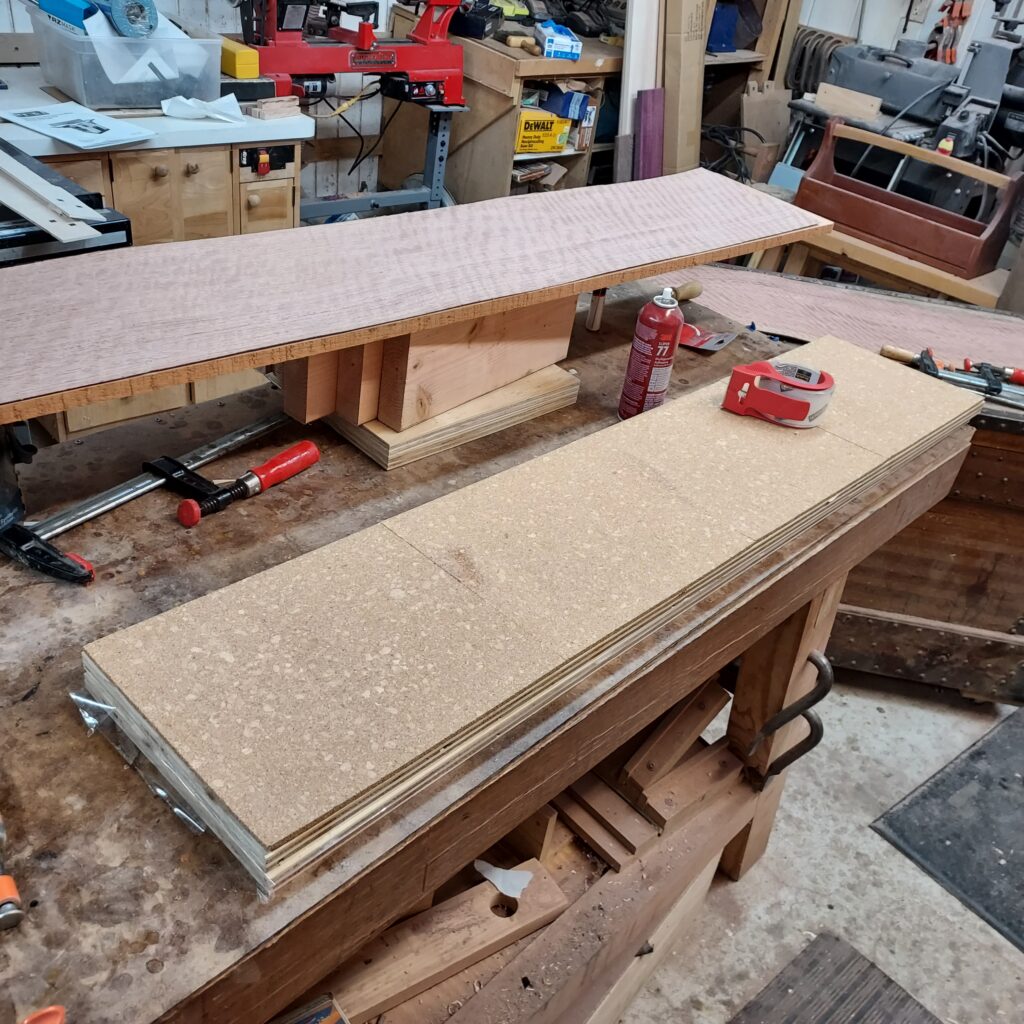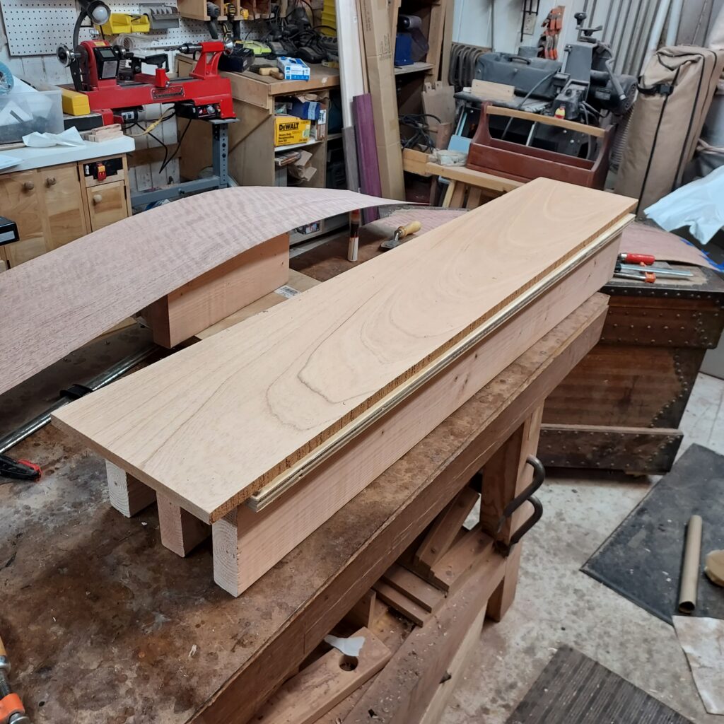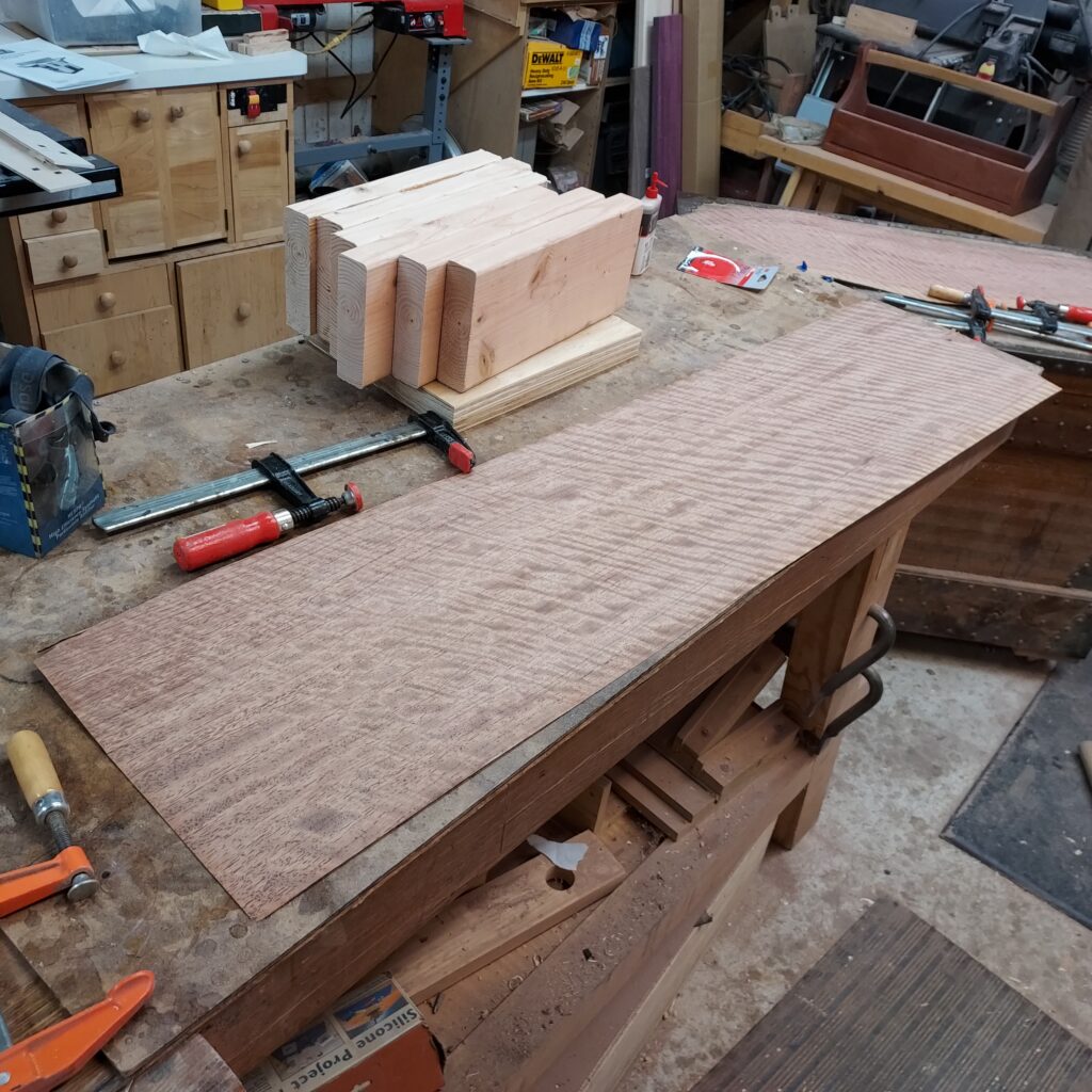 I also veneered up the top and bottom pieces, so I’ve got them all veneered and ready.