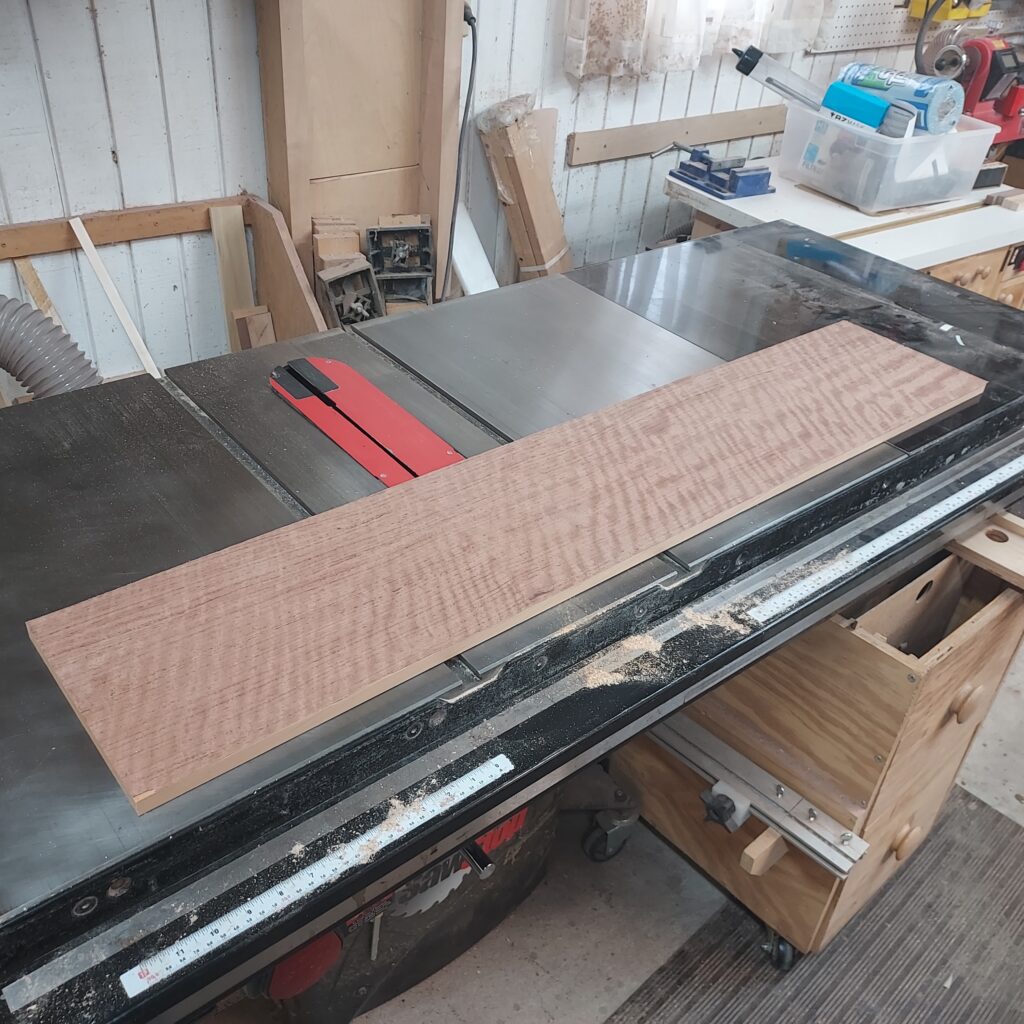 So I started by using the Spanish cedar panel I was veneering to and a veneer saw to cut the veneer to size.