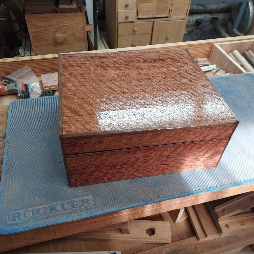 Well, I was out of town again, so it took me some time to catch up. I had given the finish plenty of time to harden, and now it was time to “rub out the finish” and make it clean and smooth. I put up some reflective light so I could see any flaws, and …